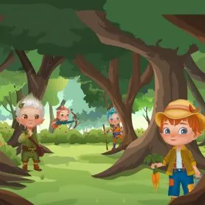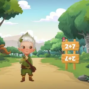 In dem Märchenwald, wo die leben sind überall die Wege ausgeschildert. Nur wenn der Mathemeister die Aufgabe richtig gerechnet hat, findet er im Wald seinen Weg nach Hause.